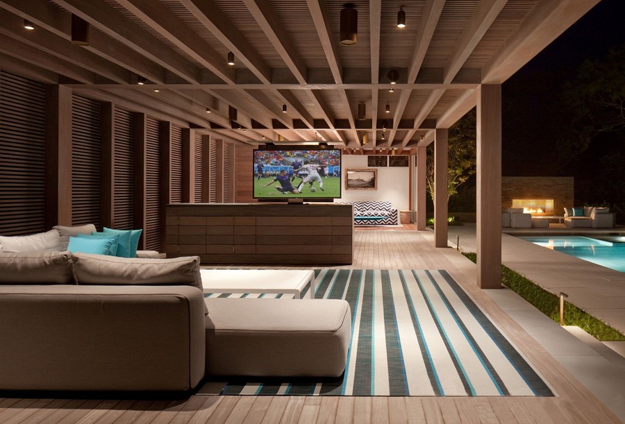 The heart of outdoor entertainment lies in the ambiance. Integrated lighting makes it easy to set the mood for any occasion, thanks to smart lighting control solutions from brands like Lutron and Control4.